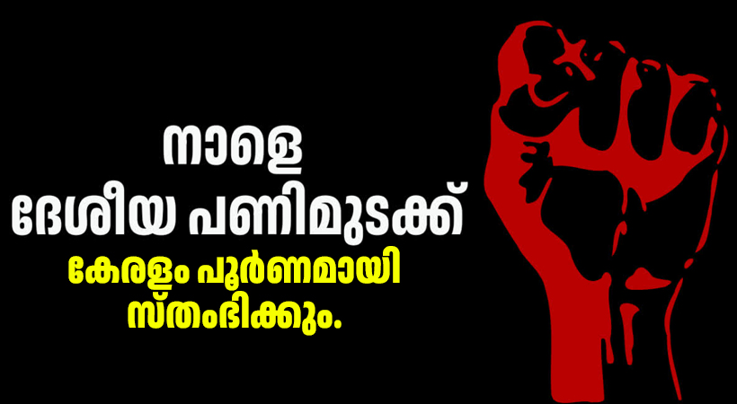 നാളെ ദേശീയ പണിമുടക്ക്; കേരളം പൂര്ണമായി സ്തംഭിക്കും.